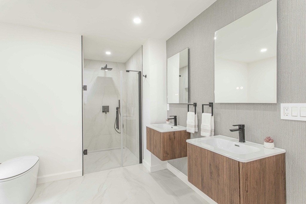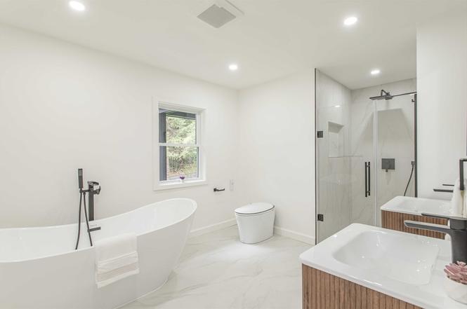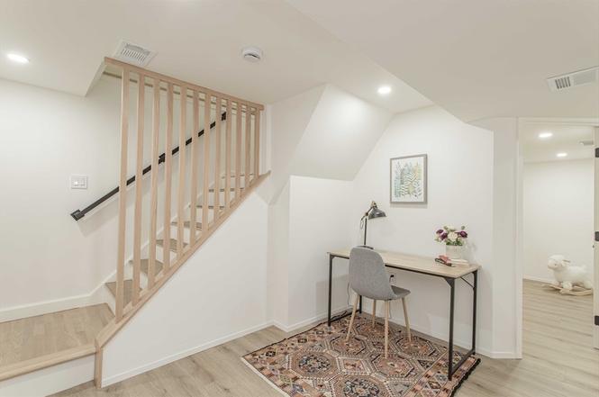 Extending the home's warm material palette downward, the fully finished basement maximizes usable square footage. The design incorporates a functional study nook and utilizes consistent wood finishes to ensure this lower level feels just as inviting and integrated as the main floor.